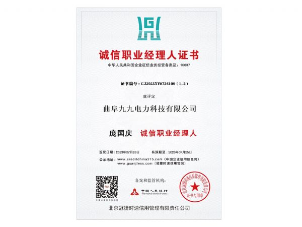 誠(chéng)信職業(yè)經(jīng)理人證書(shū)